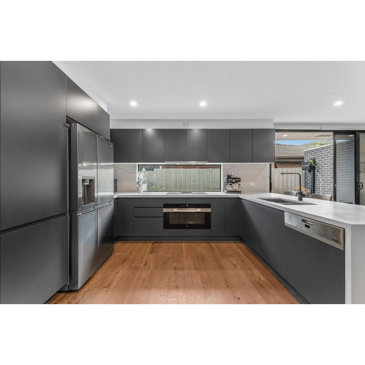 高品质厨房:配备 Miele 电器、石材台面、软关闭橱柜、嵌入式洗碗机。
